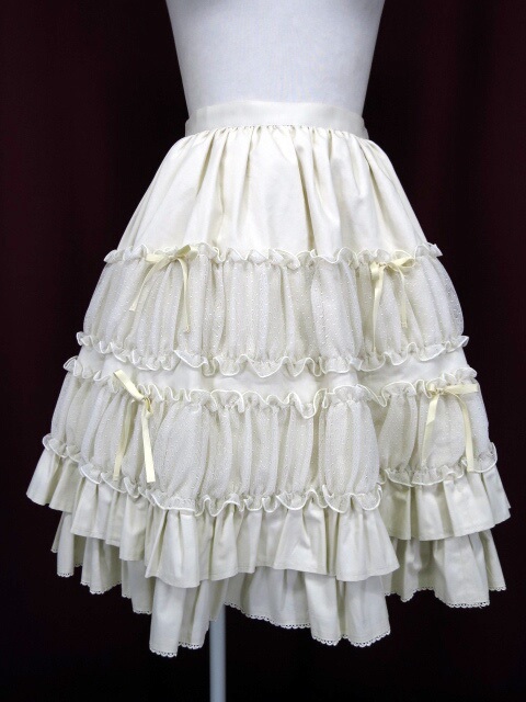 ■ドットチュールフリルスカート 生成り ドットチュールの飾りのついたボリューム感あるデザインのフリルスカートです。 |