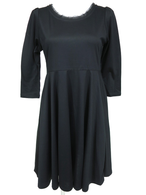 ■七分袖カットワンピース 黒 カットソー生地のワンピースです。首周りは切りっぱなしのチュールが付いています。 |
