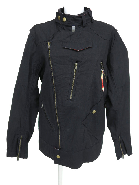 ■龍刺繍コットンライダースジャケット 黒 goukメンズラインのbokuuのジャケットです。背中側に龍の刺繍の入ったライダース風デザインのジップアップジャケットです。 |
