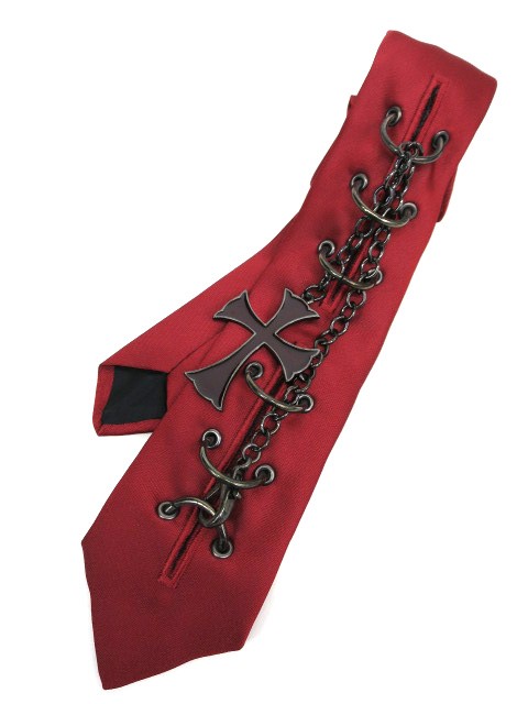 ■クロスチェーンチャーム付きネクタイ エンジ クロスチェーンチャームが付いたネクタイです。チェーンチャームはお取外し可能です。 |
