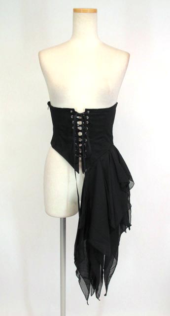 ■シフォンフリル付きアシンメトリーコルセット 黒 シフォン素材のフリル付きアシンメトリーコルセットです。前後に編み上げがついています。 |