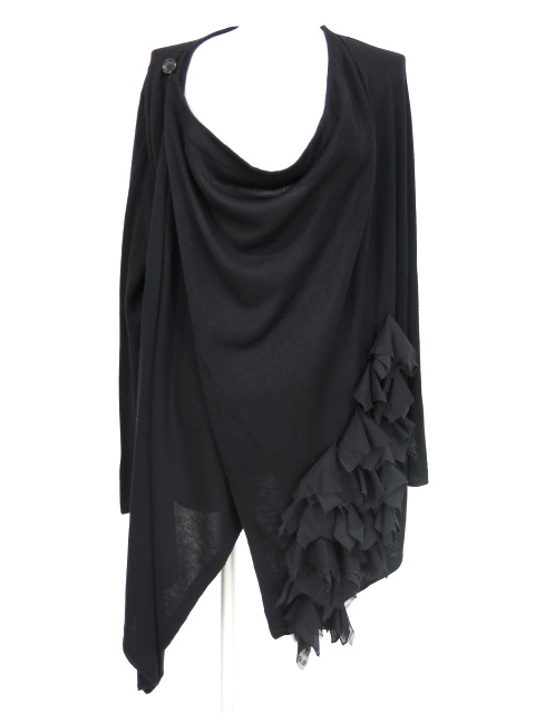 ■フリル付きアシンメトリードレープカーディガン 黒