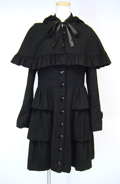 ■フードケープ付きウールコート 黒 フードケープ付属のウール生地コートです。 |