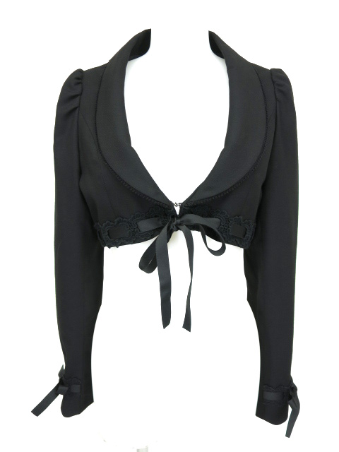 ■リボン通しボレロジャケット 黒 ウエストにリボン通しレースの付いたボレロ型ショートジャケットです。 |
