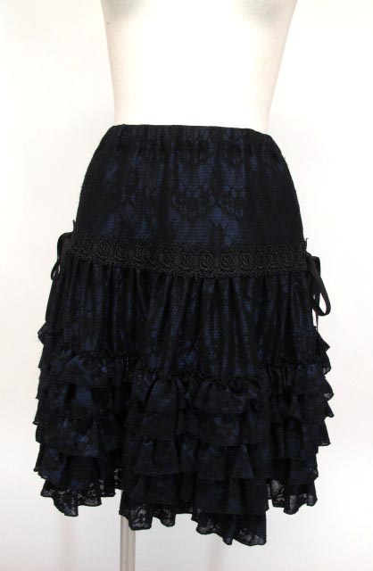 ■レース重ねスカート 黒×青 レース重ねのレイヤードスカートです。ウエスト部分ゴム入りです。 |