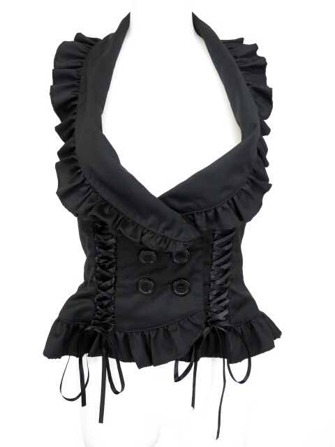 ■編み上げ付きホルターネックベスト 黒 編上げの付いたホルターネックデザインのベストです。ウエストは背中編み上げで調節できます。 |