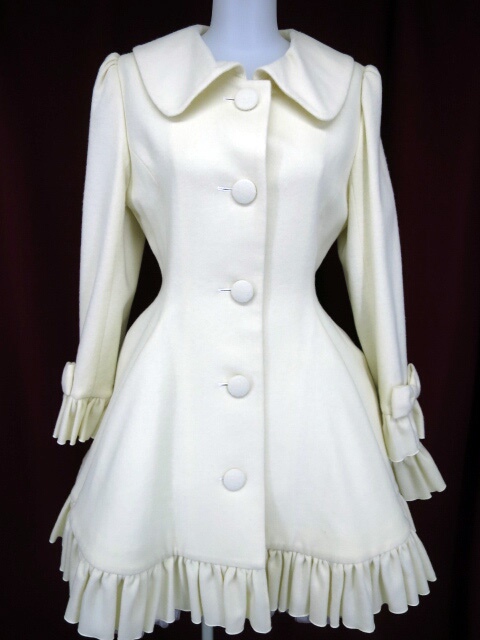 ■ブランニージェツイードコート 生成り 袖口と裾にフリルの付いたコートです。 |
