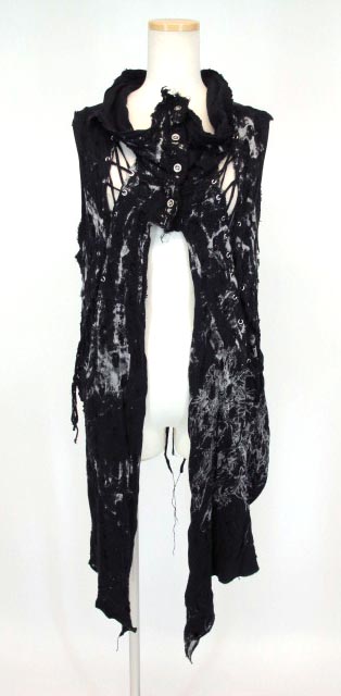 ■ダメージニットロングベスト 黒 ハードなダメージ加工を施したロング丈ベストです。 |