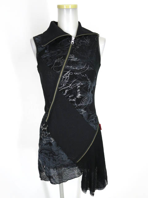 ■トランプ柄ジョーゼットノースリーブワンピース 黒×グレー トランプ柄のジョーゼット生地のワンピースです。 |