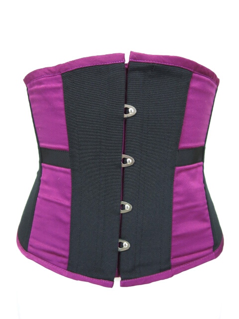 ■バイカラー・コルセット ブラック×パープル 2016S/S、漆黒のグログラン生地とワインカラーのサテンを交互に配置したゴシック風のコルセット。コーディネートのポイントに。 |