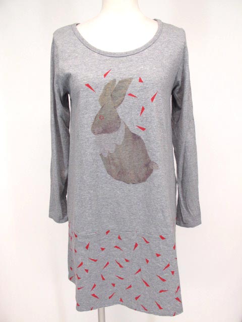 ■AYAME ONO ウサチャン柄カットワンピース グレー |