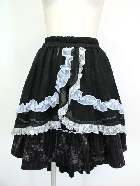 ■ストライプスカート 黒×紫 ストライプ柄生地を切り替えたデザインシースルーかぶせスカートです。ウエスト部分ゴム入りの履きやすい仕様。 |