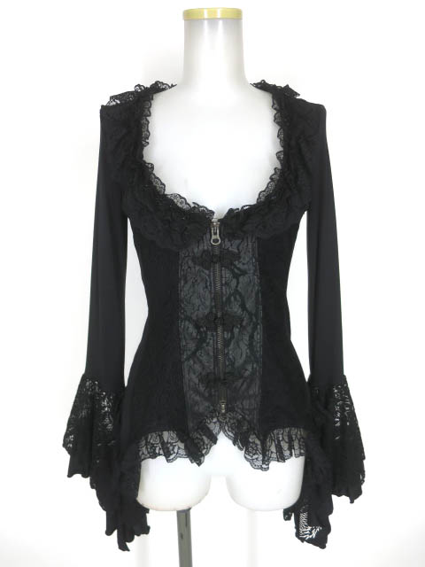 ■切替レースカーディガン 黒 切替デザインのレース生地カーディガンです。ウエスト部分からメッシュ生地のプリントを切り替えています。 |