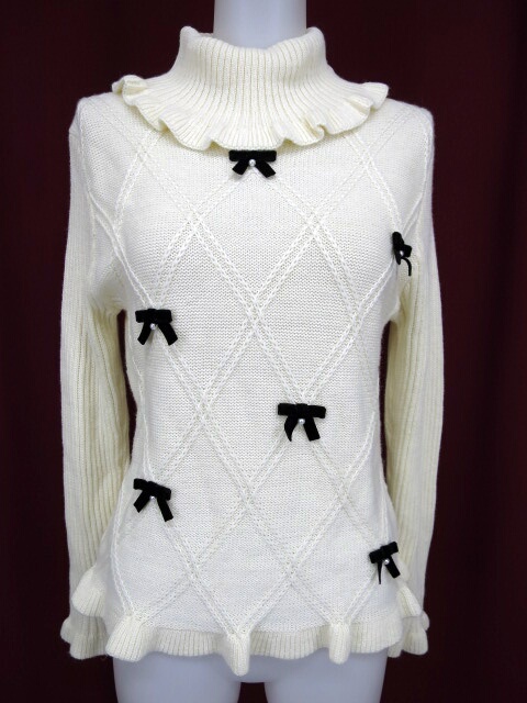 ■リボンニットセーター 生成り ベロア生地のリボンが施されたニットセーターです。 |