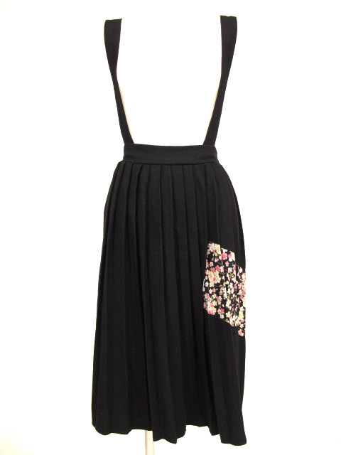 ■サスペンダー付き和柄切替スカート 黒 和柄切替の入ったプリーツスカートです。サスペンダーは取り外しができます。 |