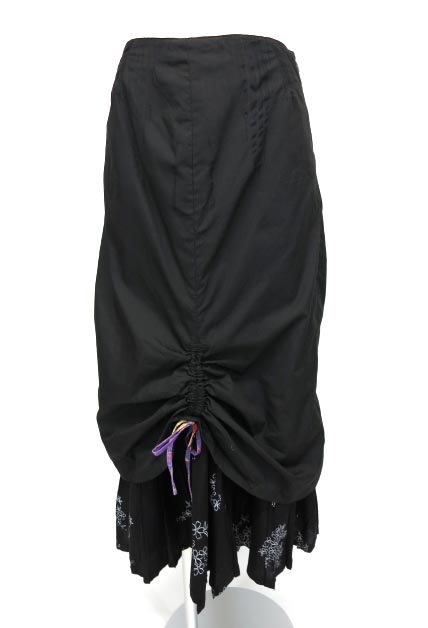 ■レイヤードロングスカート 黒 裏地の裾はプリーツが付いており、表地の裾を絞り上げるとプリーツが見えるデザインとなっております。 |