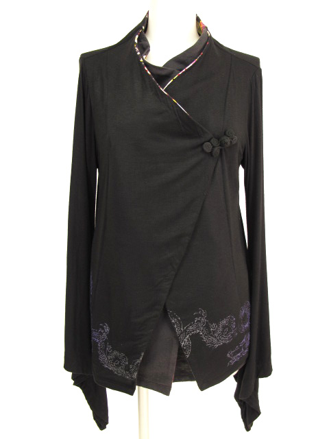 ■レイヤード振袖カーディガン 黒 前身頃が二重になった振袖のカットソー生地のカーディガンです。 |
