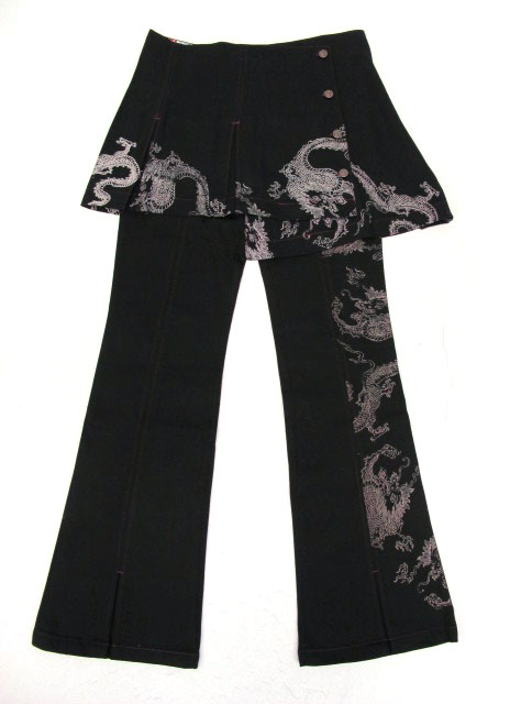 ■和柄オーバースカート付きパンツ 黒 龍プリントを使ったオーバースカート付きのパンツです。オーバースカートはボタンで取り外せます。 |