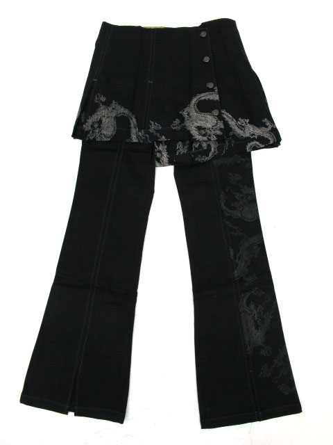 ■和柄オーバースカート付きパンツ 黒 龍プリントを使ったオーバースカート付きのパンツです。オーバースカートはボタンで取り外せます。 |