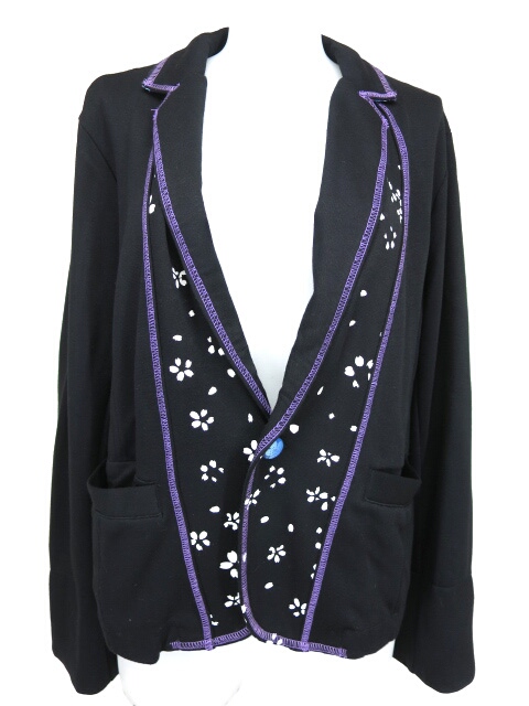 ■桜プリントカットソージャケット 黒×紫 桜のプリントの入ったカットソー生地のジャケットです。袖口は和柄の裏地がついています。男女兼用でお使いいただけます。 |