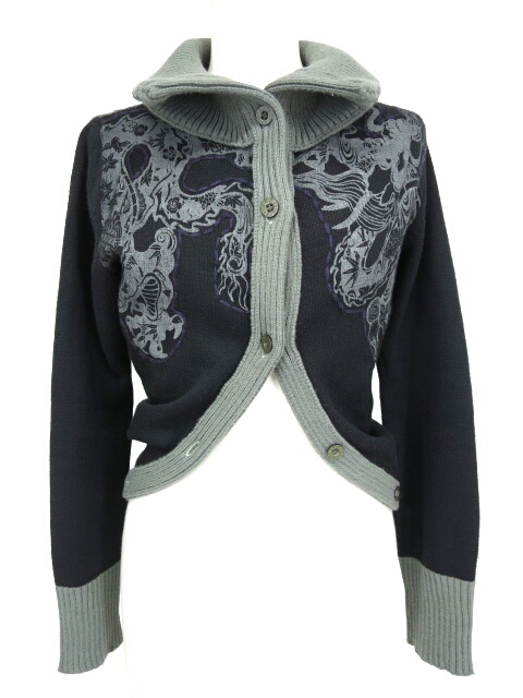 ■龍プリントリブ付きニットカーディガン 黒×グレー 龍のプリントの入った衿付きのニットカーディガンです。 |