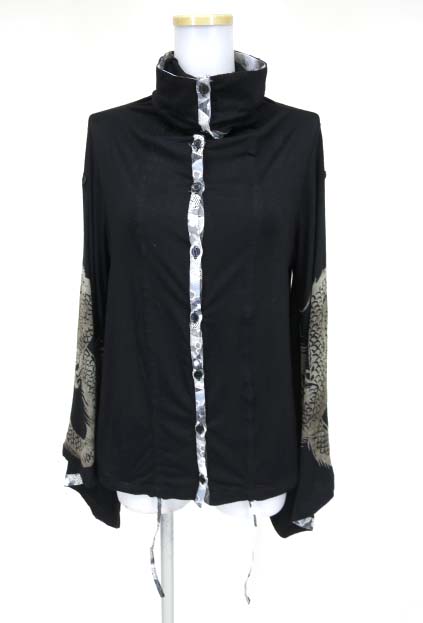 ■龍プリント振袖カーディガン 黒 龍プリントの入ったカットソー生地のカーディガンです。正面は裾を絞り上げてアレンジできます。 |