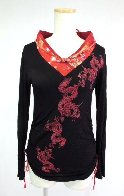 ■龍プリント長袖カットソー 黒×赤 龍プリントを使った長袖タイプのカットソーです。襟元和柄生地切替。 |