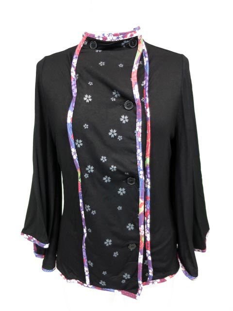 ■和柄パイピングフレア袖ダブルカーディガン 黒 gouk×BRAVE10のコラボアイテムです。才蔵が着ている衣装の形を元にデザインした羽織です。 |