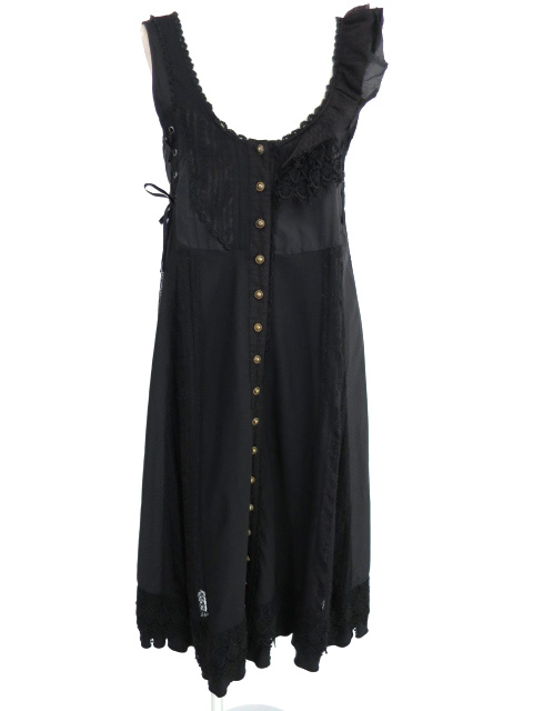 ■レース切替ノースリーブワンピース 黒 レース切り替えのゆったりとしたシルエットのノースリーブワンピースです。 |