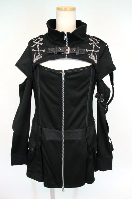 ■ジップアップジャージワンピース 黒 ボーン刺繍入りのジップアップスタイルジャージワンピースです。 |