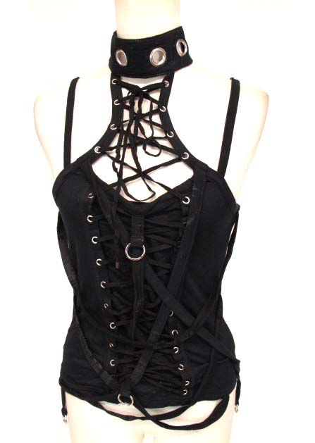 ■チョーカー付きキャミソール 黒 編み上げのホルターネックチョーカーの付いたデザインのキャミソールです。 |