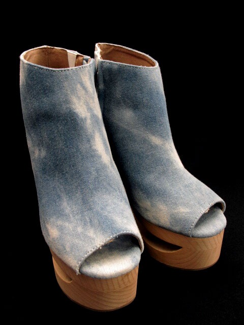 ■ウェッジソールデニムブーティサンダル 青 ウェッジソール特徴的なヒールのブーティサンダルです。デニム生地でサイドファスナー付き。 |