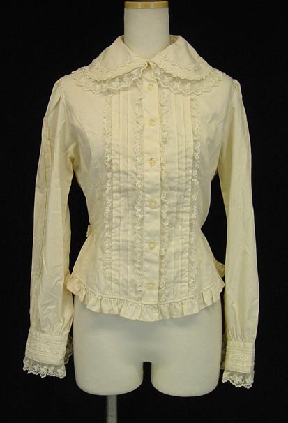 ■アンジェリーナブラウス 生成り 衿や袖にやわらかなチュールレースをあしらった、名前の通り天使のように優しい印象のブラウスです。 |