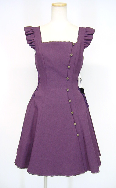 ■サイドレースアップジャンパースカート パープル ウエストのサイドにレースアップを使ったジャンパースカートです。袖付近にフリルを使っています。 |