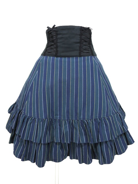 ■ストライプ編み上げスカート 紺×緑 編み上げの付いたハイウエストデザインのスカートです。 |