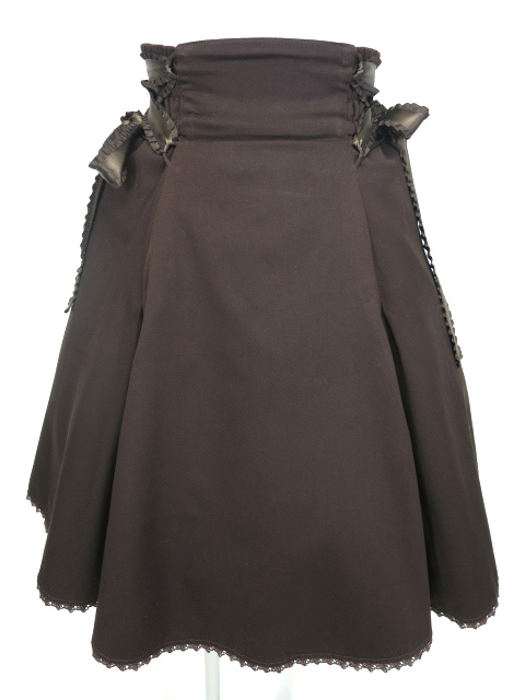 ■フリルリボンフレアースカート ブラウン サイドに編み上げリボンの付いたフレアースカートです。 |