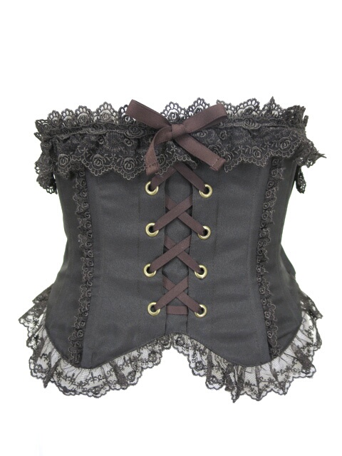 ■ボーン入りコルセット ブラウン 着脱はサイドジッパー、背中側シャーリングで編み上げで調節できます。 |