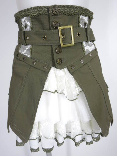 ■リボンテープジャンパースカート サックス 裾はスカラップのデザインでシフォンフリルが付いています。 |