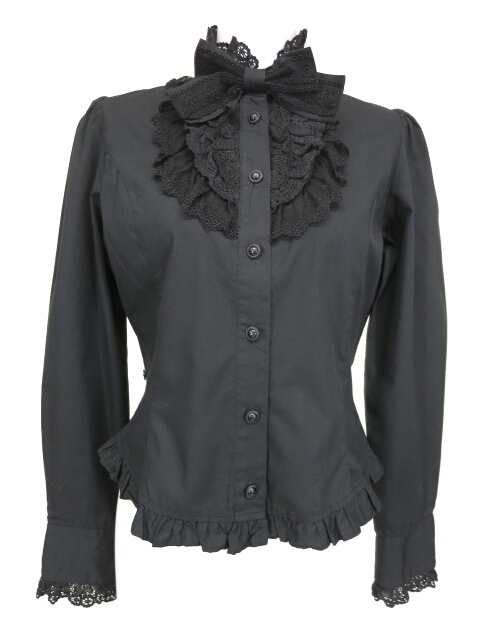 ■レース付きスタンドカラーブラウス 黒 リボンタイのセットになったスタンドカラーブラウスです。タイはマジックテープ式です。 |