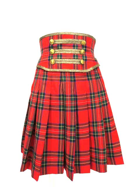 ■カマーベルト付きチェック柄スカート 赤 ウエストにカマーベルトの付いたブリティッシュなチェック柄スカートです。 |