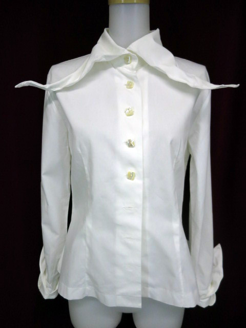 ■ロング衿ブラウス 白 長い衿の特徴的なブラウスです。衿と袖口はワイヤーが入っておりますので形を変えられます。 |