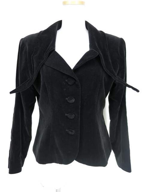 ■ロング衿別珍ジャケット 黒 長い衿の特徴的な別珍素材のジャケットです。衿はワイヤーが入っておりますので形を変えられます。 |
