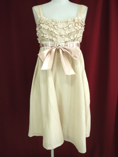 ■胸フリルノースリーブワンピース ピンク 胸元がフリル、背中がシャーリングになっているノースリーブワンピースです。 |