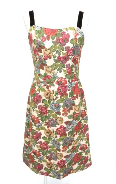 ■ゴブランノースリーブワンピース ベージュ ゴブラン織り生地のノースリーブワンピースです。肩ひもはベロアです。 |