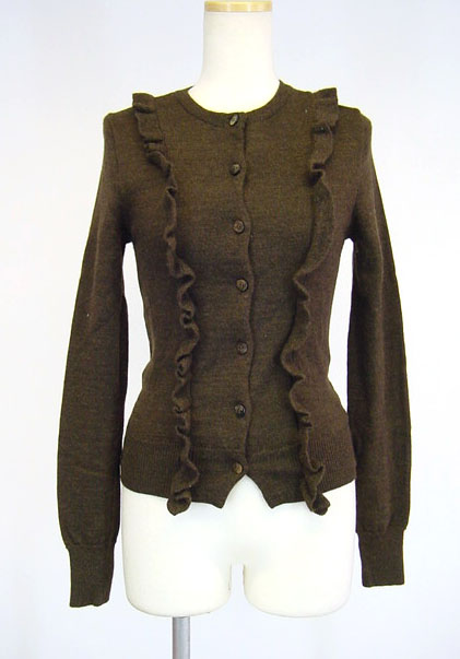 ■フリル付きカーディガン 茶 ニット生地のフリルデザインカーディガンです。 |