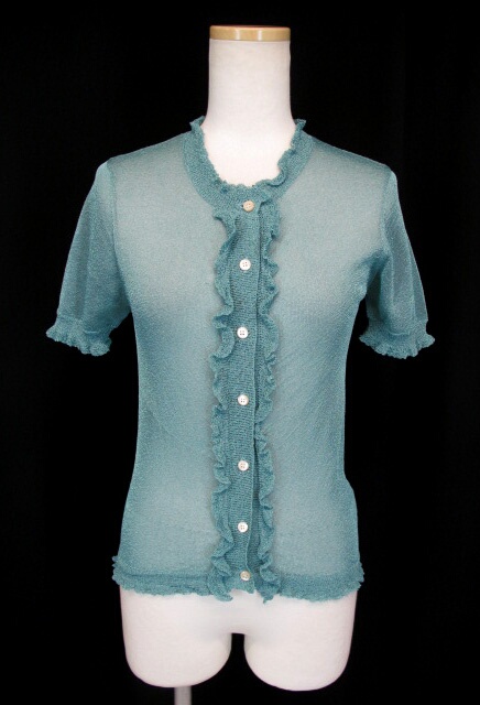 ■ラメフリルカーディガン グリーン ラメニットにフリルを使ったカーディガンです。 |