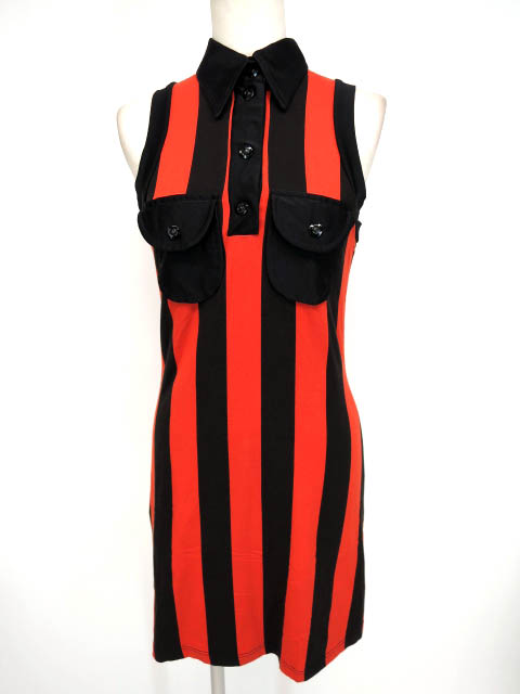 ■ストライプ柄ノースリーブワンピース オレンジ×黒 ゴシックなストライプデザインのノースリーブワンピースです。 |