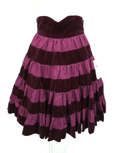 ■ジュップ ドゥ レイユール 別珍切替スカート ボルドー ボーダー状に別珍の切り替えになったティアードスカートです。 |