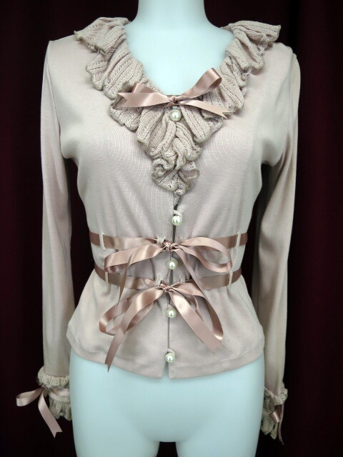 ■ル モマン ドゥ イル ア クラリフィエ プランセス カーディガン ローズ プードル サテンリボンの付いたカットソー生地のカーディガンです。 |
