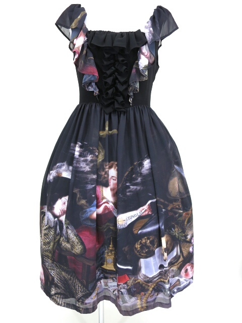 ■ローブ ドゥ ラ プルーヴ ドゥ ヴィ 黒 6~17世紀にかけて描かれた寓意的な静物画「ヴァニタス」をモチーフにしたオリジナルプリントシフォンワンピースです。 |